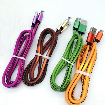 Cable de datos de fideos plano trenzado de nailon tipo C Cable de arcoíris plano de dos colores 1M Android Cable de carga de 8 pines Fabricante
