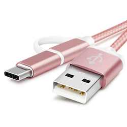 1M 2A Android Micro a tipo C Cable de carga rápida 2 en 1 Cable trenzado Cable de carga de doble propósito